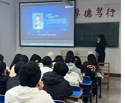 主持人根据PPT讲述中国自新中国成立以来的航天发展历程,并结合小游戏介绍部分航天人物,接着从个人事迹上引出航天精神。