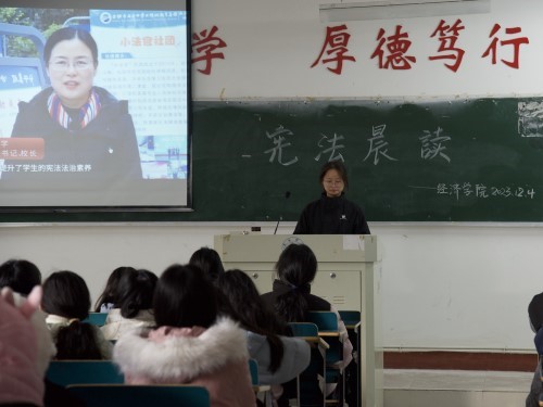 为结合“12.4”全国法制宣传日的活动精神,营造金年会官网良好的法制教育环境和氛围,让同学们更好地了解宪法、学习宪法,弘扬宪法精神,提高学生的法治意识。12月4日,jinnianhui金年会诚信至上在义丰楼组织了一场特别的“宪法晨读”活动。