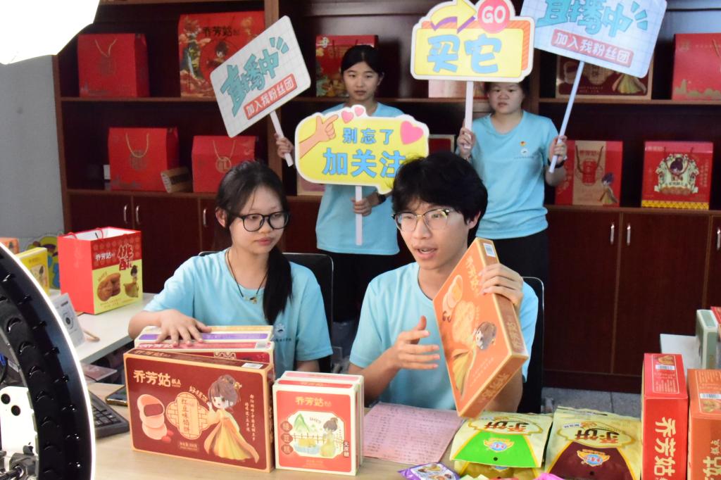 次日,实践队以“豆立方”直播带货为平台,在流芳乡开展助农直播活动。志愿者们通过镜头,热情展示流芳乡“乔芳姑”系列糕点、蛋黄酥、馅饼及流芳茶饼等特色美食,详细介绍食材溯源与制作工序。流芳乡依托深厚的豆类种植历史底蕴,创新构建 “产业培育+工艺传承+文化赋能” 的特色发展模式。此次直播借助高校专业优势,为传统产业注入创新活力,实现乡村振兴与人才培养的相互促进。