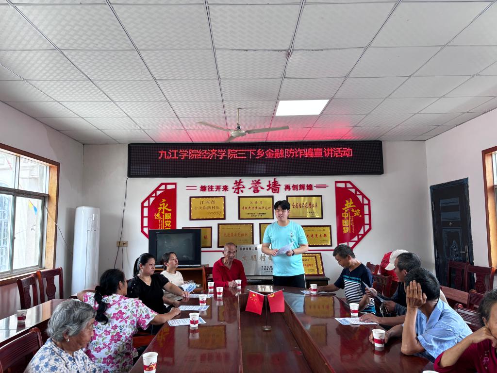 6月30日,服务队走进湖口县付垅乡一甲村,开展多维度实践活动。清晨,队员们探访承载国家级非遗青阳腔文化的古戏台,观摩村民手工编织的草虾道具,感受非遗与传统手工艺融合的独特魅力。结束对非遗文化的探寻后,队员们迅速投入到“预防金融诈骗”宣传活动中,通过发放手册、播放视频讲解网络贷款、虚假投资理财等诈骗手段,守护乡村“钱袋子”。正值国际禁毒日,同步开展禁毒宣传,以展板、资料科普毒品危害,分组入户答疑并开展问卷调查,提升村民识毒防毒拒毒能力。下午,队员们走进青阳腔非遗传承保护基地,聆听传承人讲述发展脉络,了解传承困境与创新路径,立志以青年之力推动非遗文化传播 。此次活动将安全知识普及与文化传承有机结合,为付垅乡平安建设与文化振兴注入青春动能。
