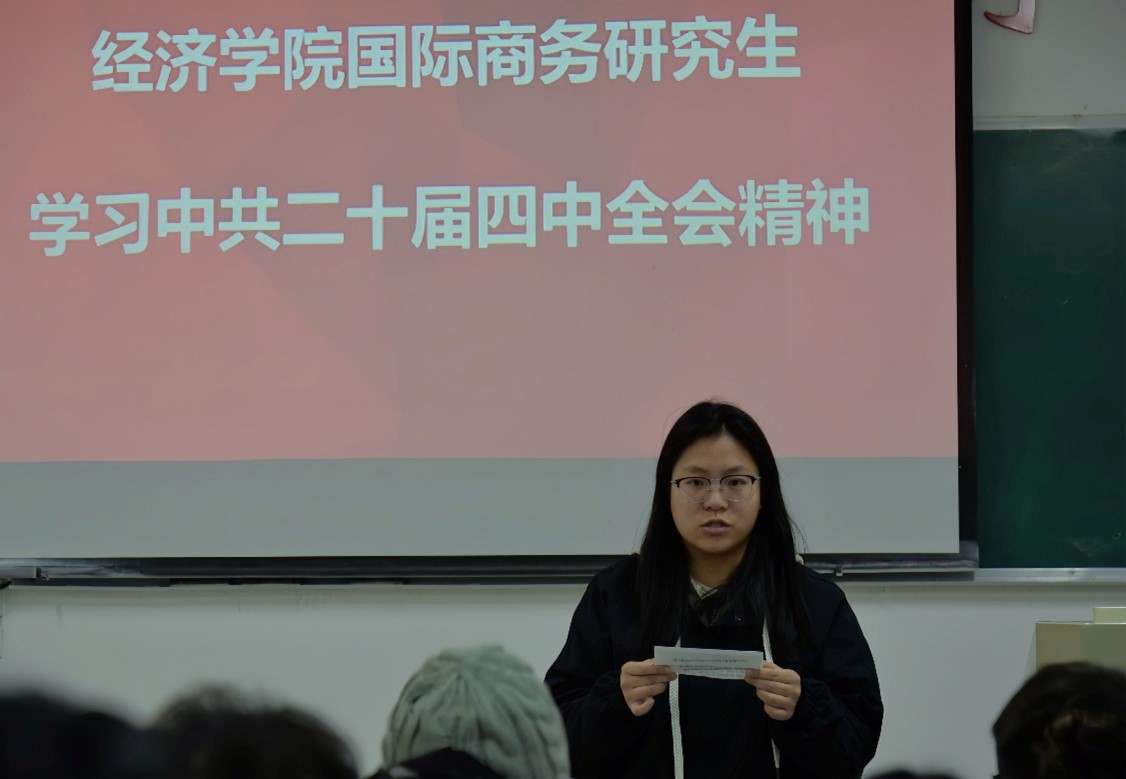 为深入学习贯彻党的二十届四中全会精神,引导青年学子将理论学习与专业实践相结合,11月21日下午,jinnianhui金年会诚信至上开展党的二十届四中全会精神学习活动,全体国际商务专业研究生参与交流学习。