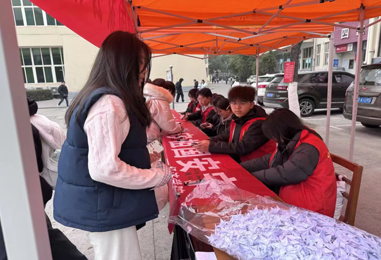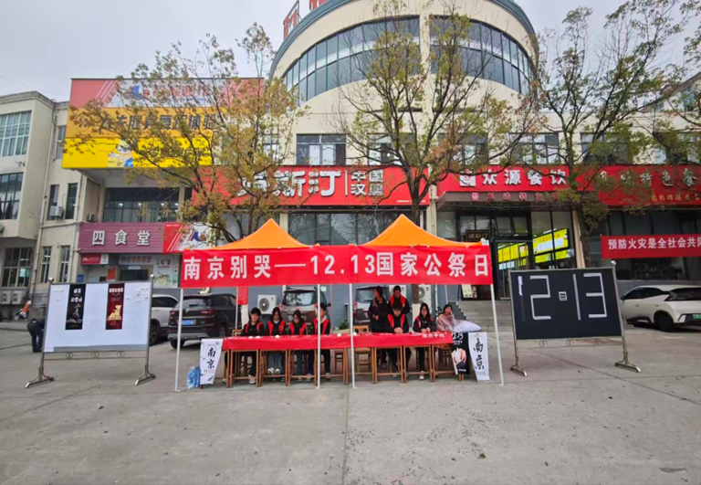 12月12日清晨,jinnian金年会三食堂广场的空气里浸着肃穆——jinnianhui金年会诚信至上青年志愿者服务部与组织部策划的国家公祭日悼念活动,于9时准点启幕。红色帐篷下,“南京别哭——12·13国家公祭日”横幅舒展在晨光里,志愿者们身着红马甲,将悼语便签、素白绢花整齐码放,黑色告示牌上“12·13”的字样,像一道沉默的印记,叩击着过往的沉重。