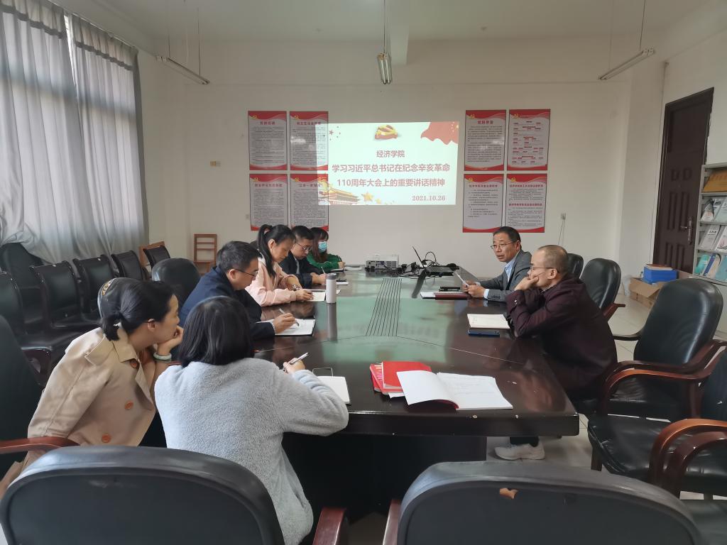 为深入学习贯彻习近平总书记在纪念辛亥革命110周年大会上的重要讲话精神,10月26日下午,jinnianhui金年会诚信至上在义丰楼619召开党委理论学习中心组(扩大)学习会,党委书记漆晗东主持会议并发表讲话。院长项益才、副院长李华出席会议,各科室负责人及支部书记等参加了会议。
