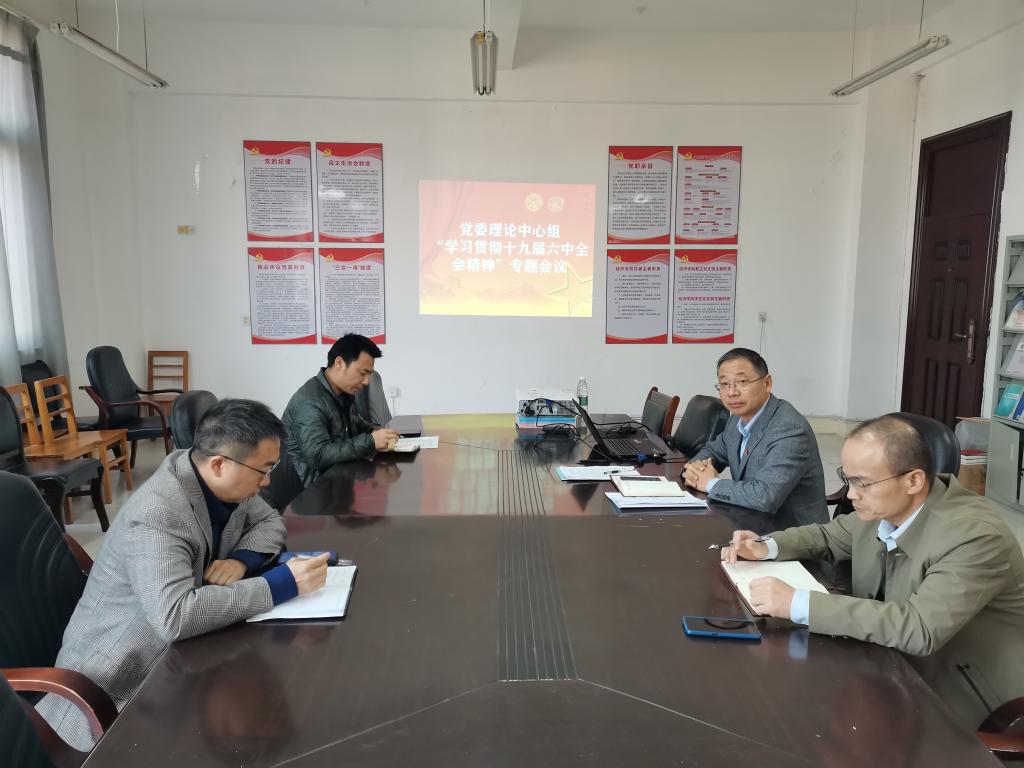 11月18日上午,jinnianhui金年会诚信至上在义丰楼619会议室召开党委理论中心组学习会议,专题学习贯彻党的十九届六中全会精神,金年会官网党委班子成员出席了会议,会议由党委书记漆晗东主持。